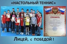 Поздравляем с ПОБЕДОЙ в спартакиаде, в играх по НАСТОЛЬНОМУ ТЕННИСУ команду "Лицея № 1" и учителя физической культуры Андрея Михайловича Сахарова ! Молодцы !