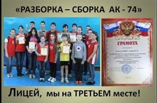 Поздравляем спортивную команду "Лицея № 1" с ещё одной ПОБЕДОЙ в спартакиаде "СПОРТЛАНДИЯ 2013" ! На этот раз - ТРЕТЬЕ место в "Неполной разборке-сборке АК – 74" ! Молодцы !