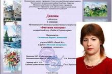 Дипломом ПОБЕДИТЕЛЯ I степени муниципального творческого конкурса "Фантазии мастеров", посвящённого году "Любви к Родному краю", за работу "Осенний натюрморт" в номинации "Живопись" награждена учитель изобразительного искусства Марина Леонидовна Гасишвили! От всей души поздравляем её с этой наградой!