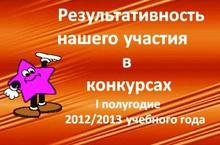 Результативность выступлений учащихся МБОУ «Лицей №1» в конкурсах за I полугодие 2012-2013 учебного года. 12.01.2013
