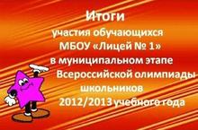 Итоги ПОБЕД МБОУ "Лицей № 1" в муниципальных предметных олимпиадах 2012-2013 учебного года. 12.01.2013