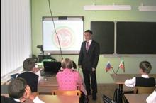 Классный час провёл ученик 11 класса Хабибулин Эмиль, который рассказал детям о гербе , о флаге, о гимне Российской Федерации и РТ.