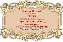 Поздравляем Игнатия Липагина и его учителя Сергея Владимировича Тягущева с ПРИЗОВЫМ МЕСТОМ в муниципальном этапе Всероссийской олимпиады школьников по ФИЗИЧЕСКОЙ КУЛЬТУРЕ среди учащихся 8 классов и желаем им новых ПОБЕД! Молодцы!!!
