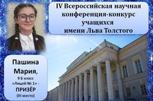 Поздравляем Марию Пашину, ученицу 9 Б класса, ставшую призёром заключительного этапа IV Всероссийской научной конференции-конкурса учащихся имени Льва Толстого (КФУ), в секции "Актуальные вопросы русского языка" (Научный руководитель: учитель русского языка Семенова Т.А.). Так держать)