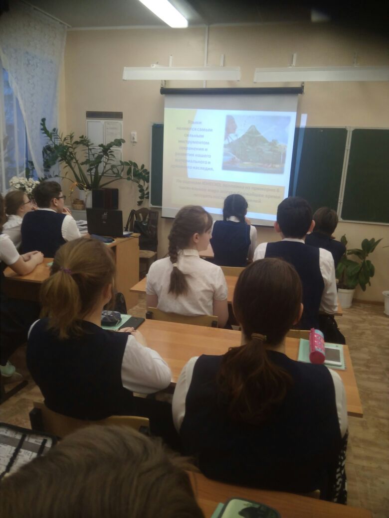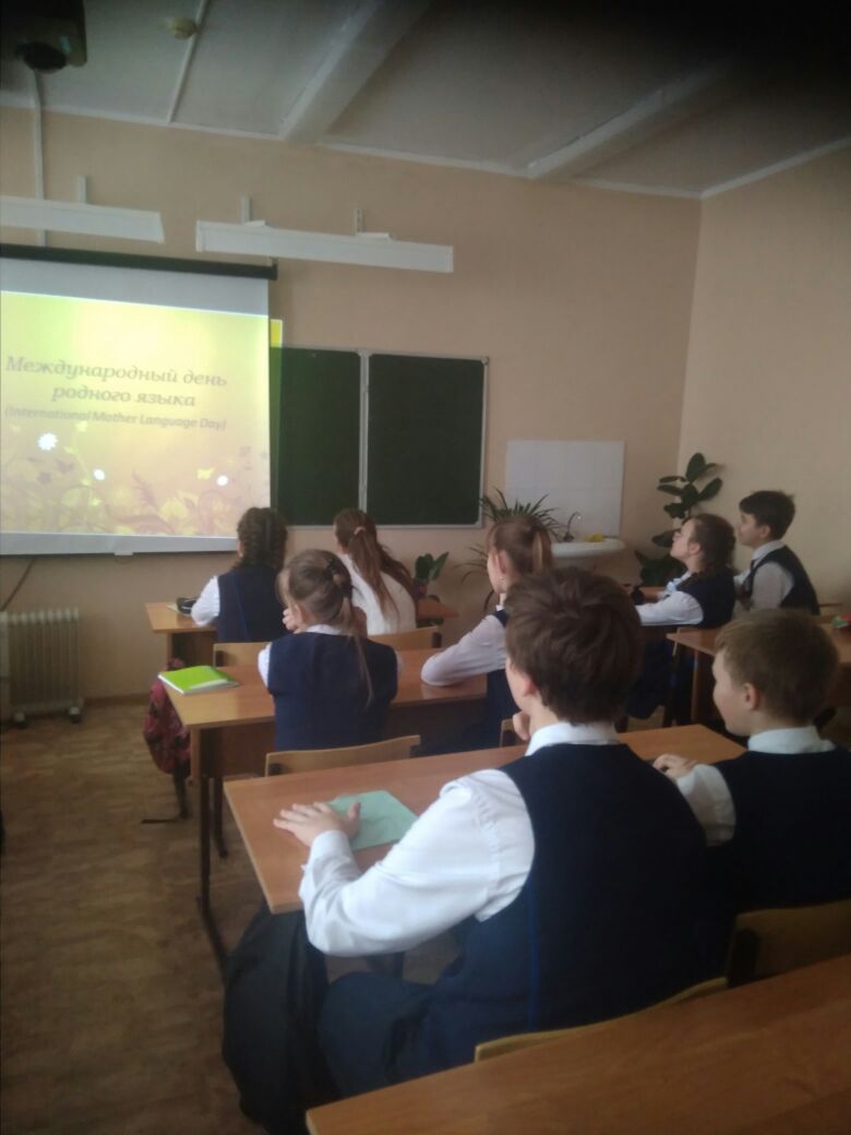Опубликовано: 24.02.201821 февраля ежегодно отмечается Международный день родного языка. Учитель родного языка Абдуллина в 6б, 6в,7-х классах провела урок, посвящённый этому дню, где познакомила учеников с историей этого дня, затем дети приняли участие в игре "Умники и умницы", в которой показали свои знания родного языка. В 6-х, 7-х, 8б и 9б классах проведен конкурс сочинений "Мой родной язык".