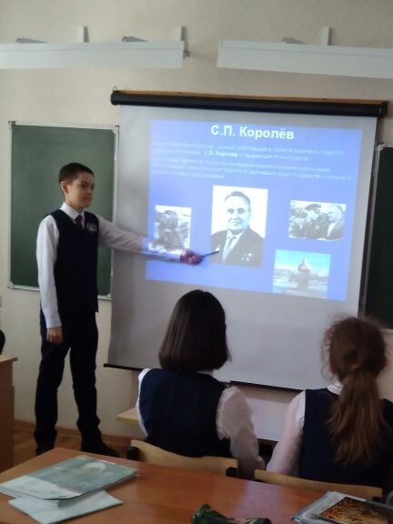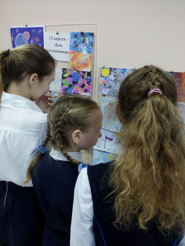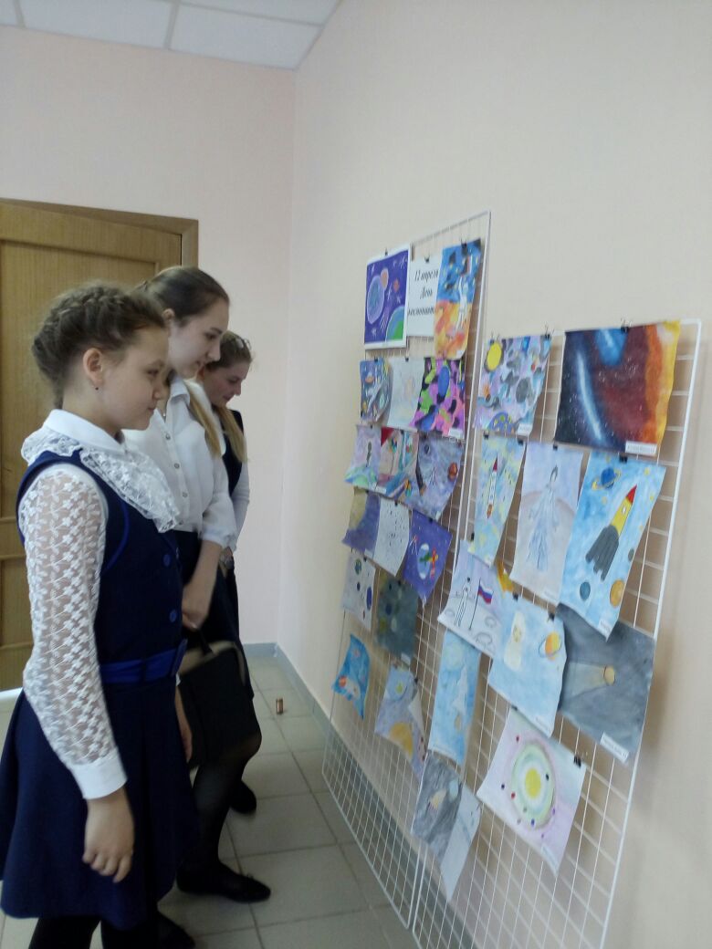 Опубликовано: 12.04.2018К Дню космонавтики в лицее прошли классные часы «12 апреля - День Гагарина», в 10- х классах - урок географии по теме Ракетно-космическая промышленность России: вчера и сегодня, организована выставка рисунков "Я вижу небо".
