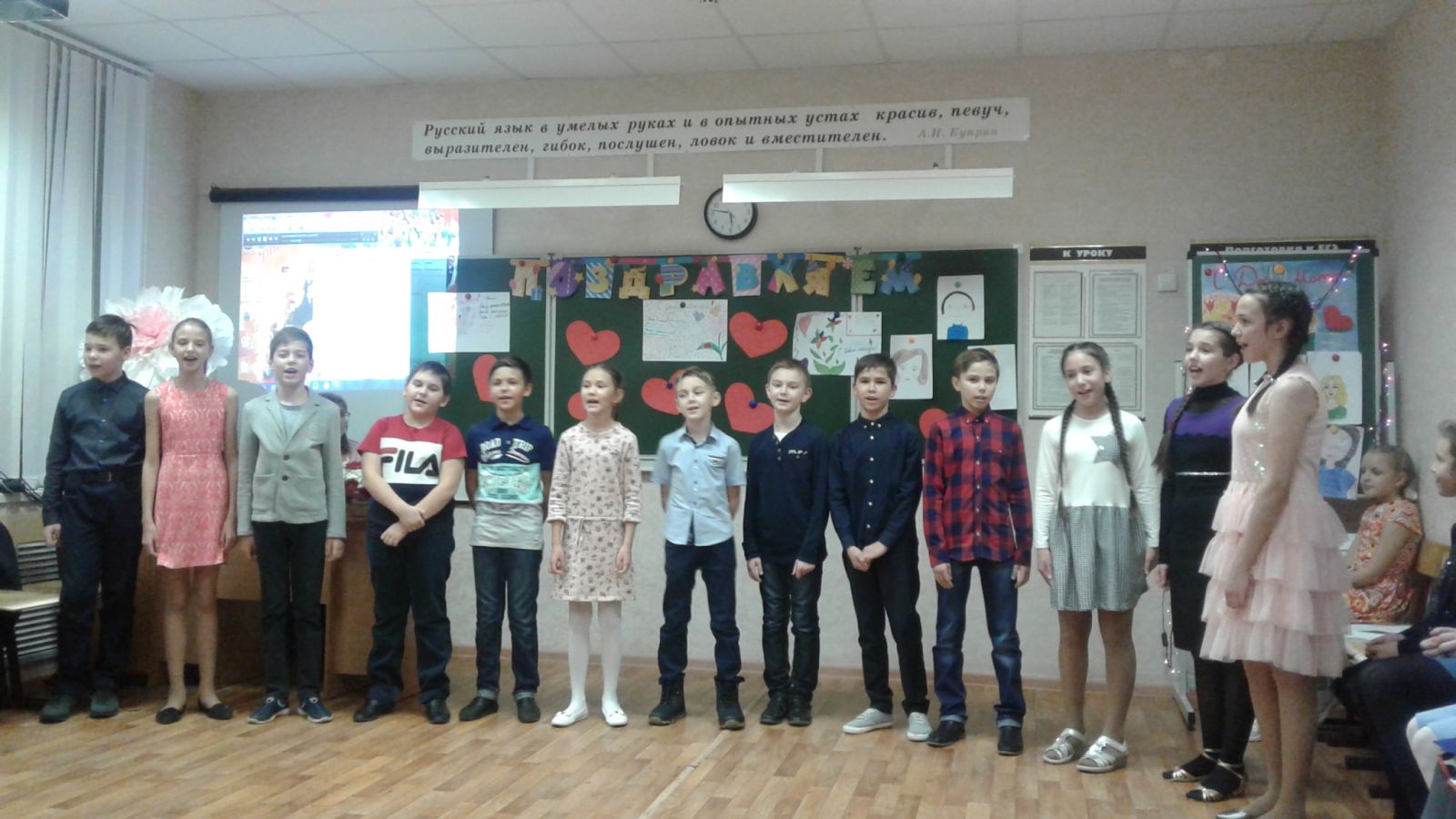 Опубликовано: 28.11.2018Татар мәдәнияты айлыгы кысаларында лицей укучылары “Әнием,кадерлем!” темасына проектлар тәкъдим иттеләр. 5нче ,6нчы,7нче сыйныф укучылары әниләренә татар телендә котлаулар әзерләделәр,шигырьләр,җырлар өйрәнделәр.Әниләр өчен оештырылган бәйрәм концертында әниләрен туган телләрендә тәбрик иттеләр.