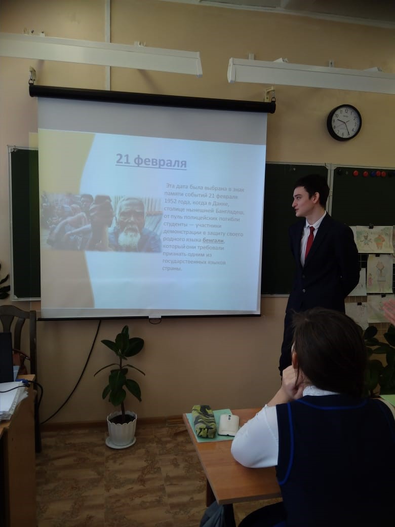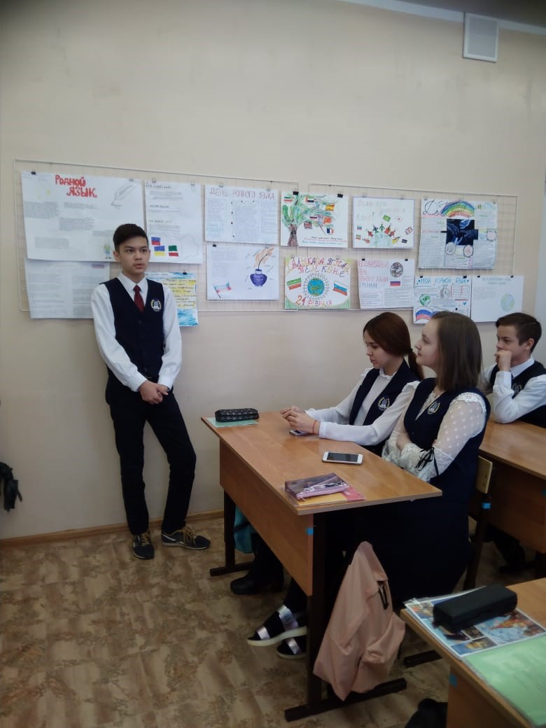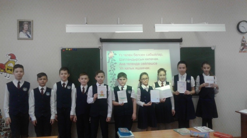 5 нче сыйныфларның татар төркемнәрендә укучы балалар туган тел турында шигырьләр,мәкальләр тупланган китапчыклар ясап алып килделәр Туган телләре турында шигырьләр сөйләделәр..Чарада укучылар Туган телләр көне бәйрәменең тарихы белән дә таныштылар. фото.jpg