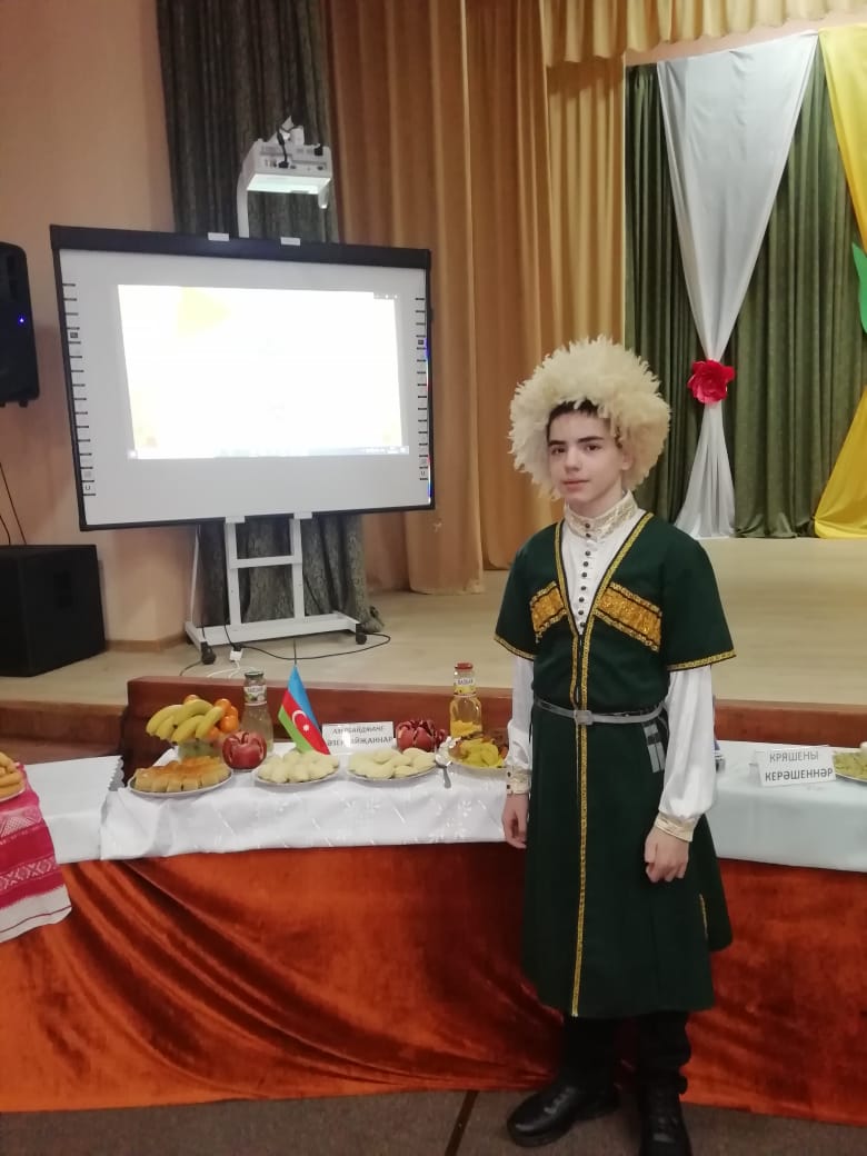 Опубликовано: 19.02.2021Поздравляем Гусейного Нурлана, ученика 7б класса, и его учителя Данию Дамировну с успешным выступлением в муниципальном фестивале "Дружба народов", организованного в рамках празднования Международного дня родного языка в Год родных языков и народного единства.
