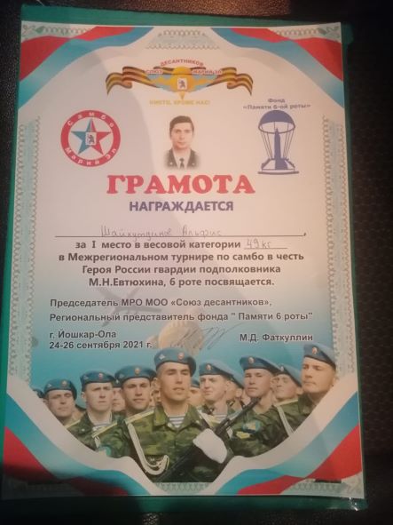 Опубликовано: 26.09.2021Поздравляем Шайхутдинова Альфиса с победой в межрегиональном турнире по самбо В турнире приняли участие команды из Республики Татарстан, Республики Башкортостан, Кировской области, Республики Чувашия, Нижегородской области, Республики Марий Эл. Молодец, Альфис , дальнейших побед и достижений тебе !