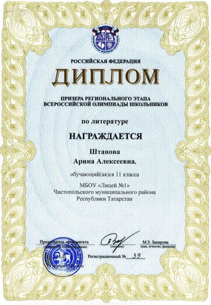 Муниципальное бюджетное общеобразовательное учреждение «Лицей №1» Чистопольского муниципального района Республики Татарстан / Татарстан Республикасы Чистай муниципаль районы Муниципаль бюджет гомуми белем учреждениесе «1нче номерлы лицей»