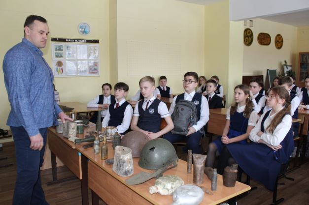 Опубликовано: 20.02.2022В 7б, 6б классах прошел урок мужества "Поиск -это судьба. Дорогами войны". Руководитель поискового отряда"Выстрел" Юдин Д.В. рассказал учащимся о событиях времен войны. Дети наглядно увидела исторические экспонаты, найденные на полях, где проходила Сталинградская битва. Урок вызвал у учащихся живой интерес к истории страны.
