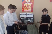 5 февраля в школе прошла акция "Армейский чемоданчик". Интересно было ребятам посмотреть и лично потрогать вещи, которые хранятся у военнослужащего в чемоданчике. Не удержались ребята, чтобы не посмотреть солдатский альбом.