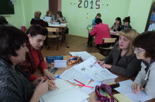 Далее работа педсовета продолжилась в практической форме. Коллектив учителей был разделён на группы по 4 человека, которые работали по структура: