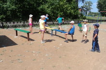 Ещё один день в лагере «Радуга» прошёл под лозунгом «В здоровом теле здоровый дух». Дети посмотрели презентацию «Вредные привычки», приняли участие в спортивных состязаниях по волейболу, настольному теннису.
