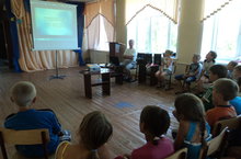 В лагере прошла конкурсная, игровая программа «Лягушка - путешественница», беседа «Правила поведения в библиотеке». Также детворе понравился конкурс «Мульти - пульти чудесная страна» и просмотр мультфильмов.