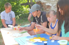 В лагере труда и отдыха «Радуга» продолжилась подготовка к празднику «Сабантуй». Учащиеся занимались оформительской деятельностью: вырезали из ДСП подсолнухи и разукрашивали их, сделали скамейку .