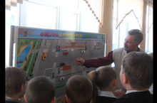 В МБОУ «Лучовская СОШ» прошла занимательная игра-путешествие «Дорожная азбука», которую подготовил и провёл преподаватель-организатор ОБЖ Зиннатуллин В.Г.. Учащиеся 1-4 классов играли роль водителей, пешеходов и участвовали в обыгрывании ситуаций на дороге с применением игрушечных автомобилей и знаков дорожного движения, расположенных на стенде.