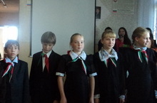 Учащиеся 5 класса стали участниками торжественной линейки, посвященной 22 годовщине со Дня рождения СНТ, которая проводилась на базе МБОУ ДОД "Дворец творчества и молодёжи".