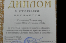Член отряда ЮИД "Жезл" Солодков Владислав, ученик 9 класса занял первое место на муниципальном этапе конкурса по профилактике детского дорожно-транспортного травматизма "Дорога без опасности" в номинации "Лучшая символика эмблема "