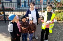 Руководитель отряда ЮИД,учитель ОБЗР Архипов Ф.И., провел совместный рейд активистов юных инспекторов движения и учеников и воспитанников детского сада вблизи школы.