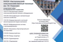 Государственное автономное профессиональное образовательное учреждение «Чистопольский сельскохозяйственный техникум имени Г.И. Усманова»/ «Г.И. Усманов исемендәге Чистай авыл хуҗалыгы техникумы» Дәүләт автоном һөнәри белем учреждениесе