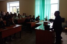 Встреча студентов призывного возраста с представителями военкомата (Захаров Сергей Петрович) и с тренером преподавателем МБУ «Центр «Ватан»,капитаном запаса ВС РФ,ликвидатором последствий аварии Чернобыльской АЭС 1986 года Чигаровым Игорем Мефодьевичем.