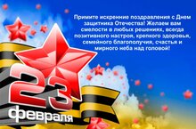 Дорогие коллеги, поздравляем вас с Днем защитника Отечества! Желаем всегда оставаться сильными, мудрыми, уверенными, смелыми, непобедимыми защитниками своих семей, своих идей, своих стремлений и своих жизненных принципов. Здоровья вам крепкого, ребята, больших возможностей на жизненном пути, неутомимых сил и достойных побед, заслуживающих громких аплодисментов от близких, друзей и коллег!
