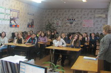 Для студентов 311 и 511 групп прошла встреча с заместителем главного врача городской больницы №2, заведующей поликлиникой, неврологом Глонягиной Евгенией Васильевной, которая провела беседу о вреде курения и алкоголизма