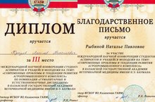 24 апреля в ФГБОУ ВО ''Казанская государственная академия ветеринарной медицины имени Н.Э.Баумана'' студент 31 группы Кутуев Ярослав, под руководством преподавателя математики Рыбиной Натальи Павловны, принял активное участие в Международной научной конференции студентов,аспирантов и учащейся молодёжи на тему:''Современные проблемы и тенденции развития агропромышленного комплекса''. Ярослав был награждён Дипломом за III место в работе секции ''Гуманитарный и естественнонаучный цикл''.