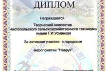 Государственное автономное профессиональное образовательное учреждение «Чистопольский сельскохозяйственный техникум имени Г.И. Усманова»/ «Г.И. Усманов исемендәге Чистай авыл хуҗалыгы техникумы» Дәүләт автоном һөнәри белем учреждениесе