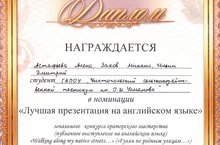 Победа в конкурсе ораторского мастерства на тему: «Walking along my native streets…» 26.02.2017