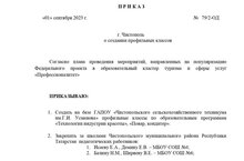 Сегодня на базе техникума начал свою работу образовательный кластер среднего профессионального образования «Чистопольский образовательный кластер туризма и сферы услуг «Профессионалитет». Техникум вошел в число 60 образовательных организаций России, выигравших конкурс в 2023 г. на предоставление федерального гранта в размере 70 млн.рублей с целью создания образовательных кластеров СПО в рамках федерального проекта «Профессионалитет» государственной программы Российской Федерации «Развитие образования» в отрасли «Туризм и сфера услуг».