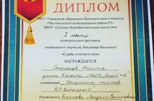 Поздравляем, Степанова Никиту, занявшего 1 место в Муниципальном фестивале, посвященном творчеству Владимира Высоцкого "Судьба, отлитая в стихе" (руководитель Киямова Л.С.). Молодец, так держать!!!