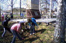 23 апреля 2012 года обучающиеся 1-4 классов очистили от прошлогодней листвы территорию парка, в котором находится памятник воинам-землякам, погибшим в ВОВ.