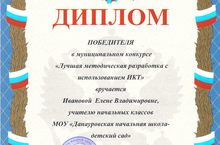 Поздравляем победителя Иванову Елену Владимировну и призёра Абдуллину Разию Рафиковну, участников муниципального конкурса "Лучшая методическая разработка с использованием ИКТ".