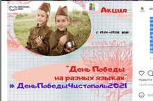 МКУ «Управление образования ИК ЧМР» @obrazovanie_chmr и МБУ ДО «Дворец творчества детей и молодежи» @dvorec.tvorchestva запускает акцию «День Победы на разных языках», посвященную Дню Победы в войне над фашистской Германией. Принять участие может каждый желающий.Для этого нужно записать видео с исполнением песни «День Победы» на родном (или изучаемом) языке в свой личный аккаунт и указать официальный хештег #ДеньПобедыЧистополь2021 отметить в публикации @obrazovanie_chmr и @dvorec.tvorchestva