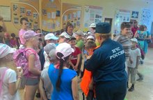Сотрудники МЧС провели беседу с детьми пришкольных лагерей "Как вести себя на воде в летнее время".