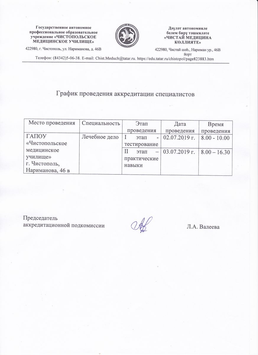 Государственное автономное профессиональное образовательное учреждение «Чистопольское медицинское училище» / Дәүләт автоном һөнәри белем бирү учреждениесе “Чистай медицина училищесы”