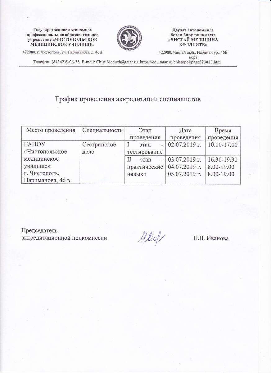 График проведения аккредитации специалистов