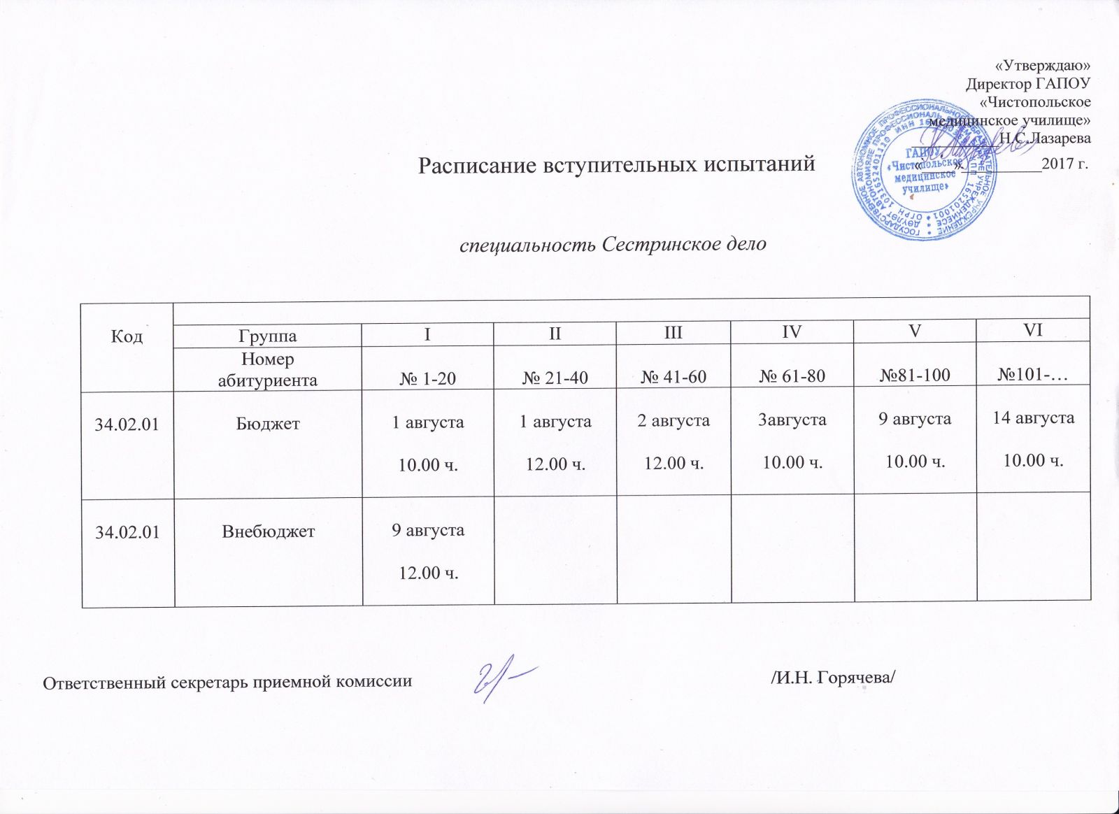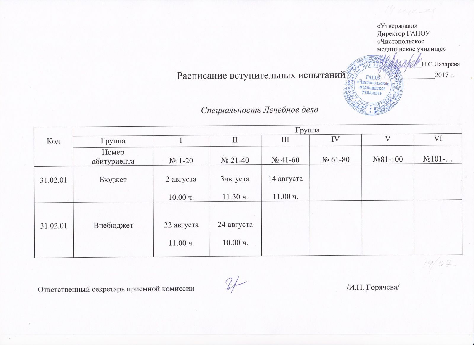 Изменилось расписание вступительных испытаний II группы (№№21-40).