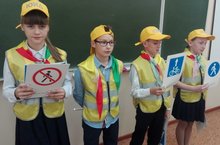 Отряд ЮИД Клаксон провели с учащимися начальных классов Открытый урок по ПДД «Путешествие по стране дорожных знаков» в рамках проведения Всероссийской онлайн-олимпиада для школьников «Безопасные дороги».