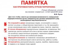 Памятка "Как противостоять угрозе терроризма и экстремизма" 15.09.2020