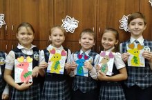Ученики начальных классов трудились над созданием новогодних открыток с символом 2020 года. Открытки получились яркие и красивые!
