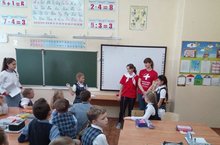 Студенты медецинского училища с преподавателем провели в 3 "а" классе конкурно-игровую программу о здоровом питании.
