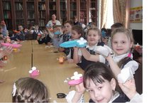 31 марта, учащиеся 1 В класса (учитель Романова С.К., библиотекарь Иващенко Н.К.) побывали в гостях в Центральной городской библиотеке. Сотрудниками библиотеки (Леонтьева С. и другие) с удовольствием был проведен с первоклашками мастер-класс по изготовлению лодочек в технике оригами. -