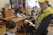 Участники отряда ЮИД "Клаксон" провели занятия с учащимися начальных классов "Зимняя безопасность". ЮИДовцы разобрали опасные ситуации на дорогах в зимнее время. Повторили правила по ПДД в зимний период. Также ребятам были розданы листовки.