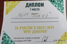 Учащиеся 8В класса МБОУ "СОШ 1" участвовали в квест-игре "Круг доверия",где заняли 1 место