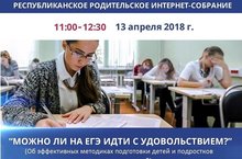 Республиканское родительское интернет-собрание 12.04.2018 13 апреля пройдет Республиканское интернет-собрание "Можно ли на ЕГЭ идти с удовольствием?",online-трансляция на сайте КИУ.РФ