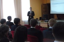 В актовом зале школы для учащихся 10-11 классов прошло мероприятие по профориентации с участием ассистента кафедры управления человеческими ресурсами Казанского Федерального Университета Пшеничным С.П.